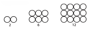 5. Pola bilangan persegi panjang \(\Rightarrow 2,6,12, \ldots\)