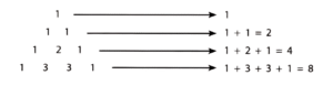 9. Pola bilangan Fibonacci \(\Rightarrow\) susunan angka yang nilai angka berikutnya diperoleh dari jumlah dua angka sebelumnya.